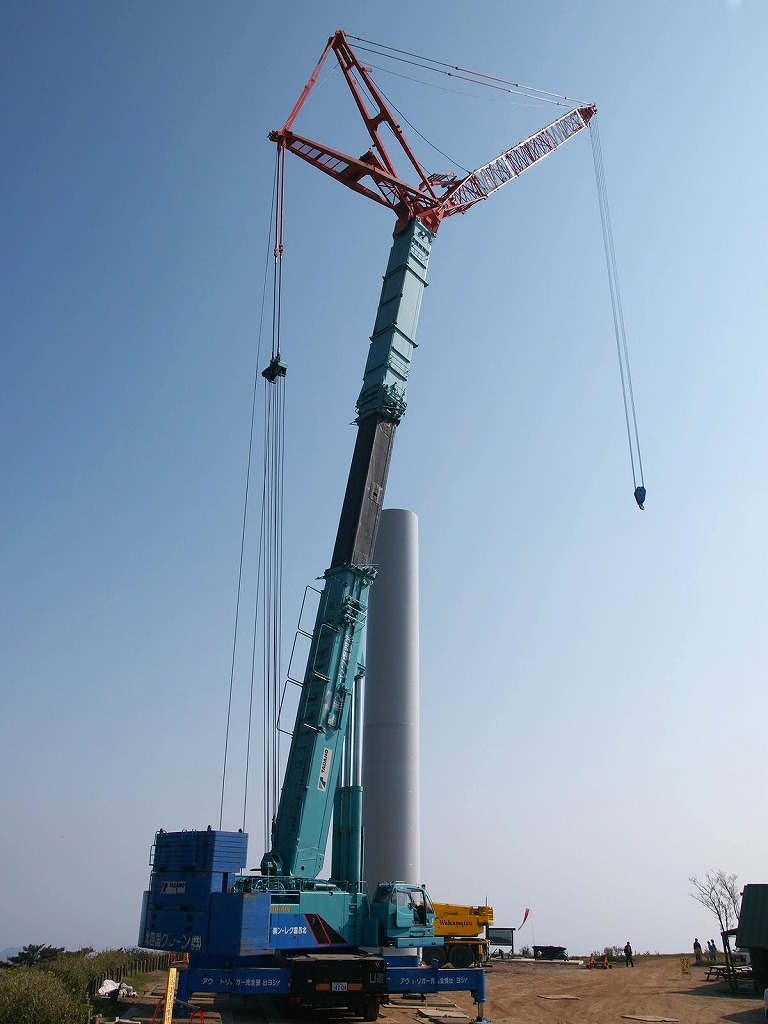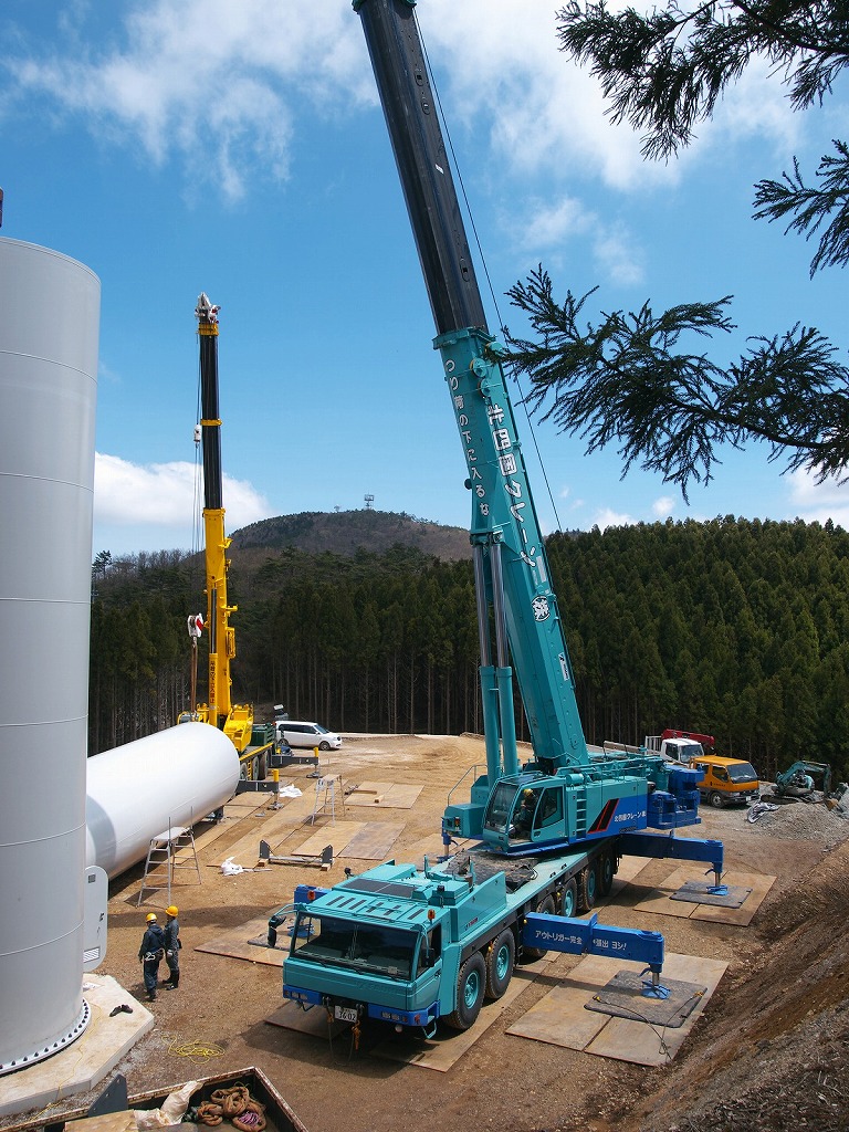 KOBELCO SL60003月~ 株式会社横河ブリッジ 山陽本線幡生構内武久こ線橋道路橋新設工事 DEMAG CC8800-1 3月~ 日本通運株式会社 上勝神山風力発電所工事 KOBELCO SL6000