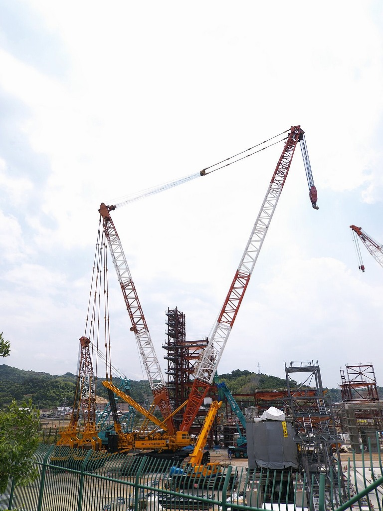 TADANOGA3600N写真 4月~ 日本通運株式会社 宇部アンモニア COOLER更新工事 6月~ 日本通運株式会社 新日本石油精製㈱水島製油所 プラント工事 7月~ 山九株式会社 川内原子力発電所 蒸気発生器取替工事 8月~ 穴吹・小竹・香西JV 新設統合第一小・中学校(仮称)建設工事 9月~ 株式会社上組 寿鋼業北九州 新設工事 9月~ 日進プラント株式会社 旭化成ケミカルズ プラント新設工事 10月~ 日本通運株式会社 関西電力舞鶴発電所 ヒーター上架工事 KOBELCO 7800 写真 10月~ 関電プラント株式会社 舞鶴火力発電所 2号ガス加熱器据付工事