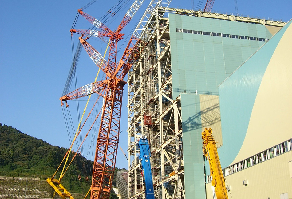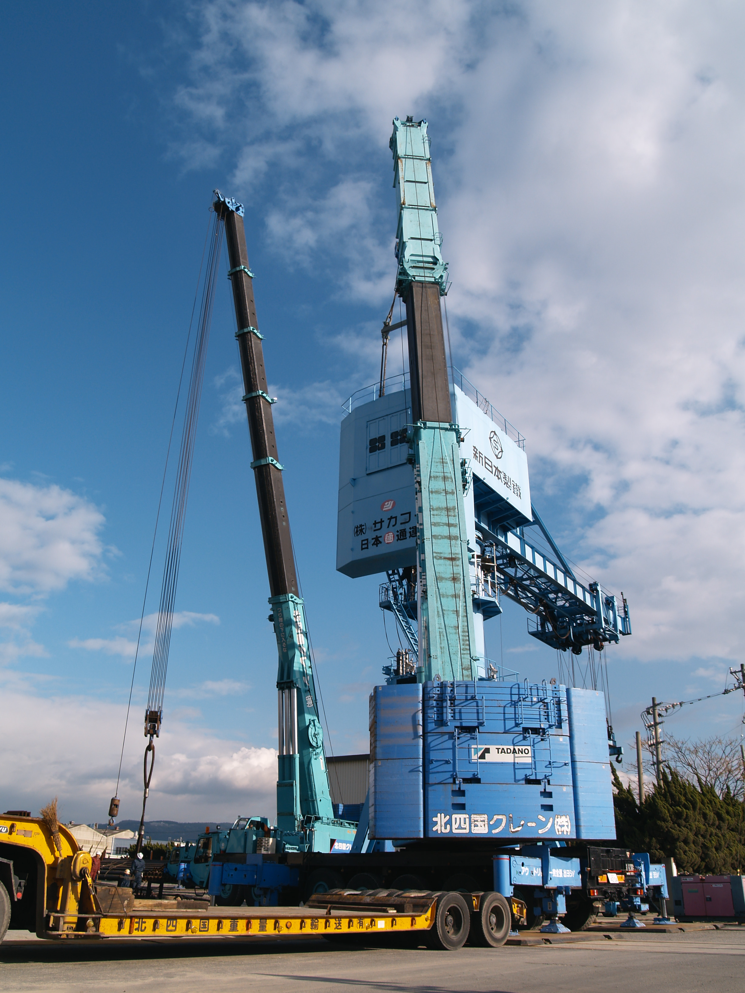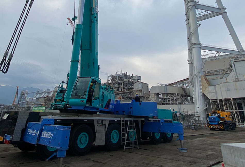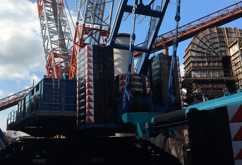 北四国クレーン株式会社は世界最大級クレーン重機(TADANO/CC8800-1/SL13000/AR5500M/SL6000/DEMAG/KOBELCO)を保有し国内・国外の建設現場にて活躍する重機業界のパイオニア企業です|他社には無いオーダーメイド(当社が設計・提案)のクレーンを用い、国家レベルの工事や他社が着手したことの無いような工事を手がけるクレーン工事のプロフェッショナル集団です