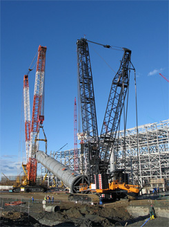 北四国クレーン株式会社は世界最大級クレーン重機(TADANO/CC8800-1/SL13000/AR5500M/SL6000/DEMAG/KOBELCO)を保有し国内・国外の建設現場にて活躍する重機業界のパイオニア企業です|他社には無いオーダーメイド(当社が設計・提案)のクレーンを用い、国家レベルの工事や他社が着手したことの無いような工事を手がけるクレーン工事のプロフェッショナル集団です