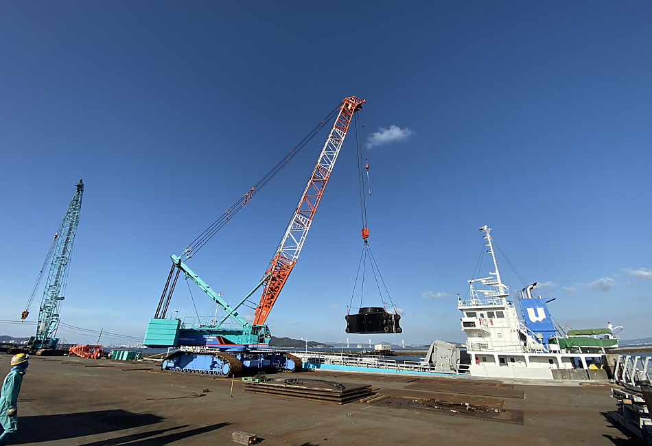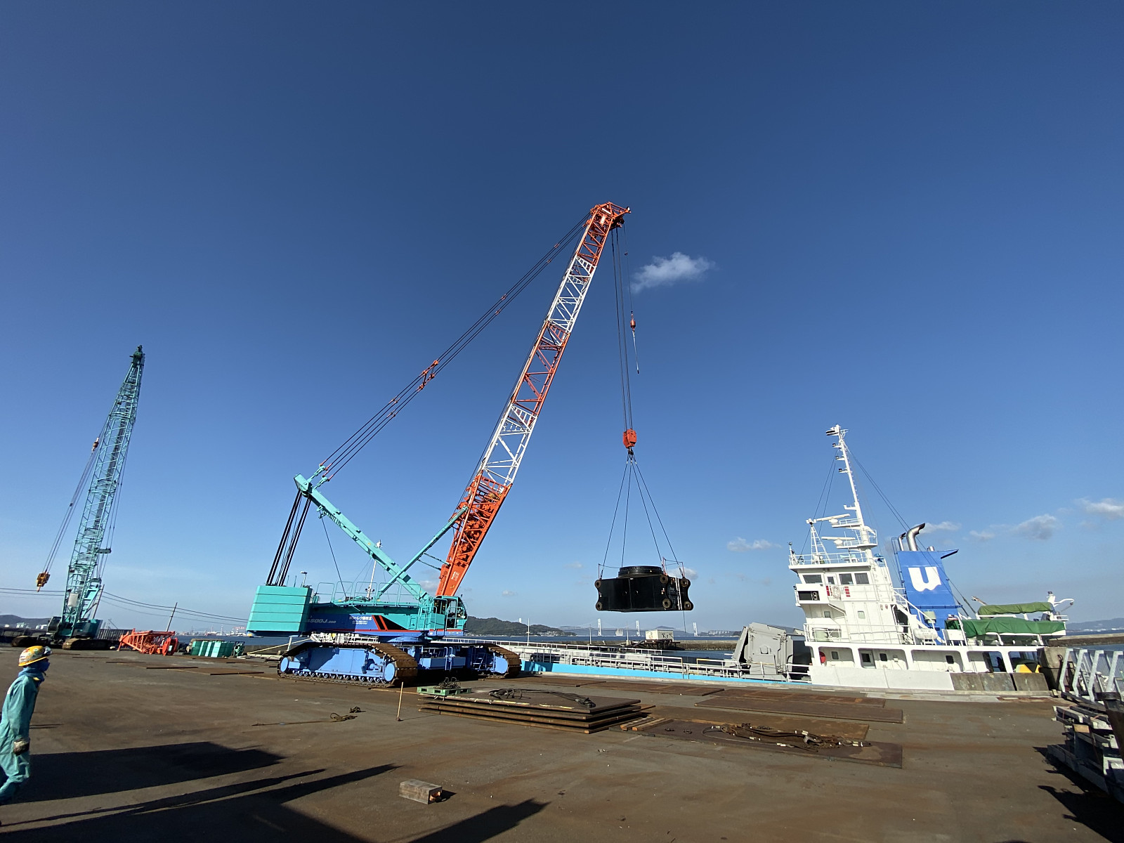 香川県(坂出・高松・宇多津)で重量物の一時保管・置き場をお探しの方は岸壁付貸土地所有の北四国クレーン株式会社へ。450t吊クローラークレーン常設だから3000tバージまで対応!重量荷物もおまかせを!