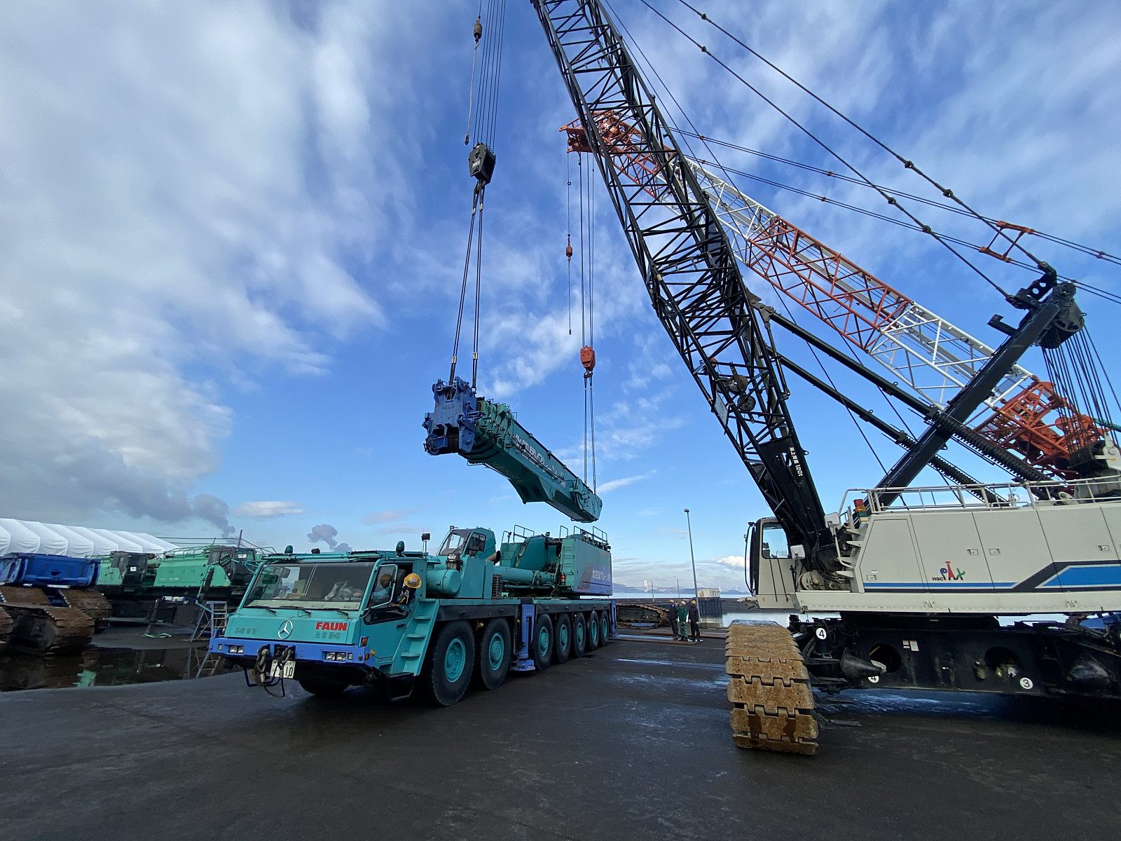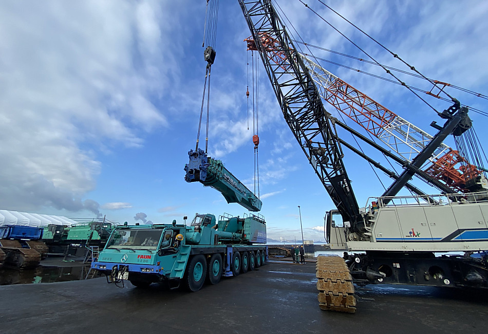 北四国クレーン株式会社は世界最大級クレーン重機(TADANO/CC8800-1/SL13000/AR5500M/SL6000)を保有し国内・国外の建設現場にて活躍する重機業界のパイオニア企業です|他社には無いオーダーメイド(当社が設計・提案)のクレーンを用い、国家レベルの工事や他社が着手したことの無いような工事を手がけるクレーン工事のプロフェッショナル集団です